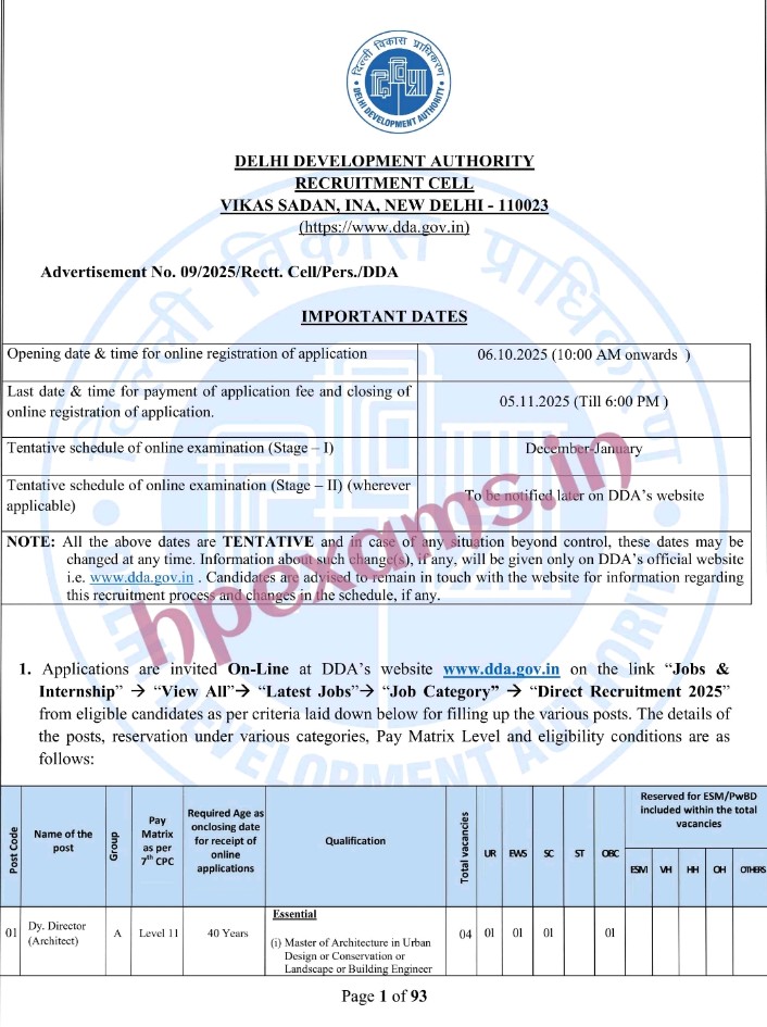 Delhi Development Authority has invited applications for the recruitment of various posts under Direct Recruitment Quota. Interested and eligible candidates can apply online here – https://dda.gov.in/latest-jobs
