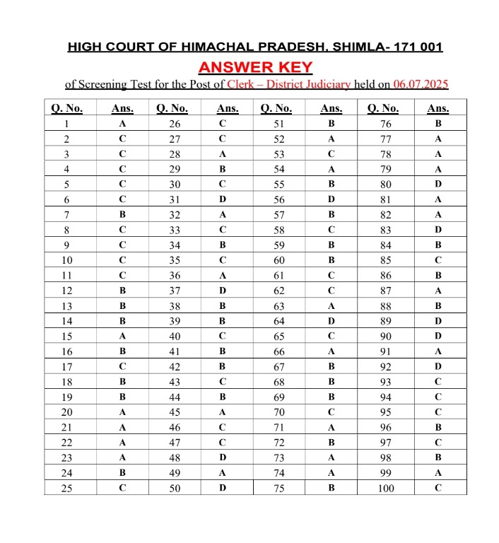 HP High Court Clerk Exam Question Paper